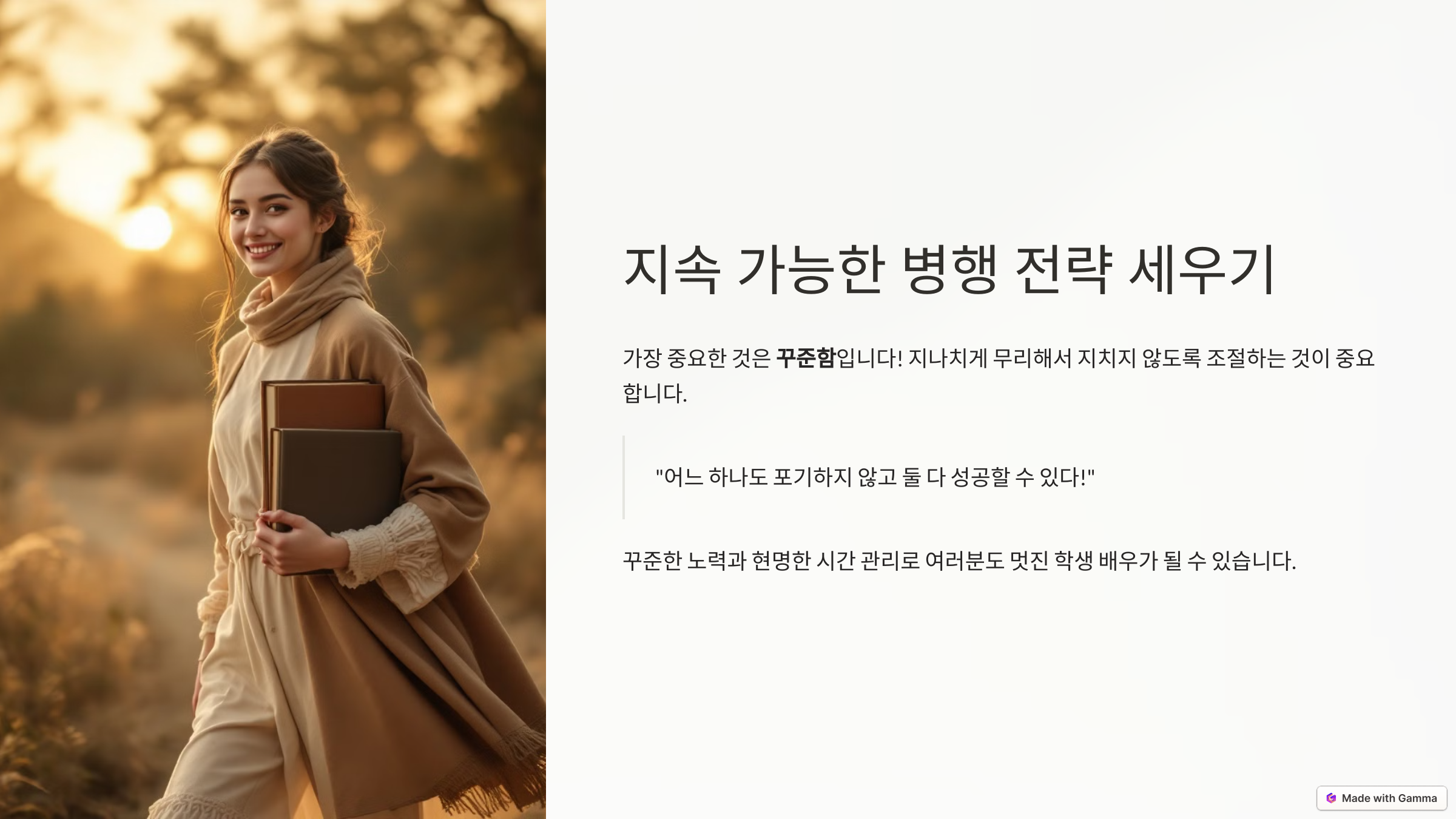 성공적인 병행을 위해선 하루 일과를 체계적으로 구성하는 것이 중요해요.